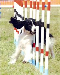 Pes musí preskočiť ponad tyč tak, aby ju nezhodil. Psovod psa navádza gestami a zvukovými povelmi, pričom sa nesmie psa dotknúť, ani sám preskočiť prekážku, či zhodiť krídlo.
